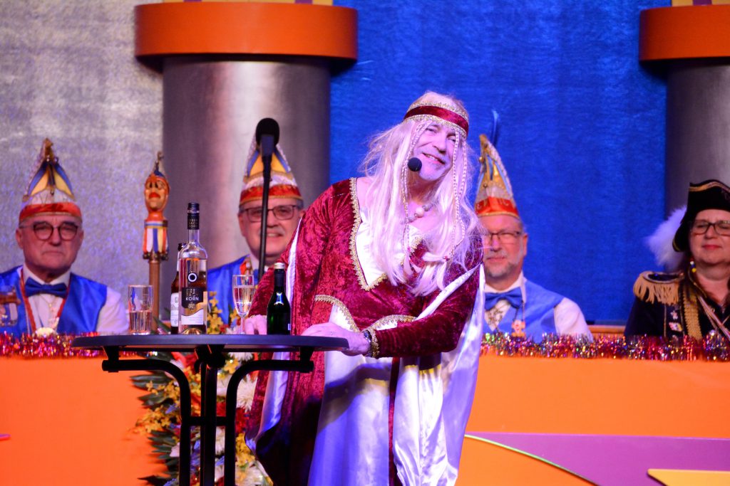 Den Vortragsreigen eröffnete Rainer Sänger. Der Bajazz vom HCV schaute in politisch-literarischer Manier sehr kritisch auf die Missstände in der Welt und vor Ort. Eine Kritikspitze adressierte er an die Ingelheimer Verwaltung. „Da wär es von der Stadt ganz nett, wenn jeder eine Info hätte. Ich frag‘ die Stadt, bitte sehr, / ist Kommunikation denn so schwer?“. Worum ging’s? Um deren Bauvorhaben in Heidesheim: „Der Dallas wird, so ist Stand heute, / dicht gemacht für ein halbes Jahr. Was das bedeutet, ist euch wohl klar: Fühlt’s auf der Autobahn mal krasser, / gibt’s hier im Örtchen nichts zu lachen.“